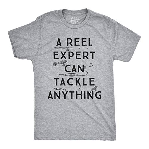 Mens A Reel Expert Can Tackle Anything Tshirt Funny Fishing Tee Mens Funny T Shirts Funny Fishing T Shirt Novelty Tees for Men Light Grey XL